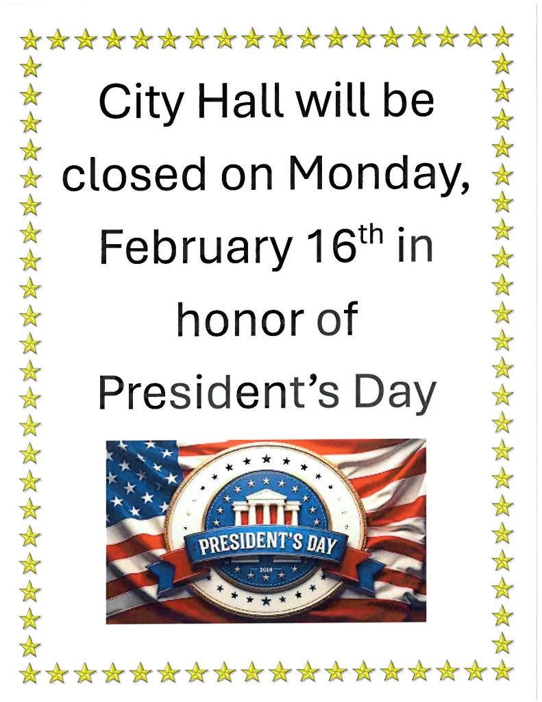 City Hall will be closed February 16th, 2026 in honor of President’s Day February 5, 2026 By City of Caliente City Hall will be closed on Monday February 16th in honor of President’s Day. We will resume normal business hours on Tuesday February 17th.