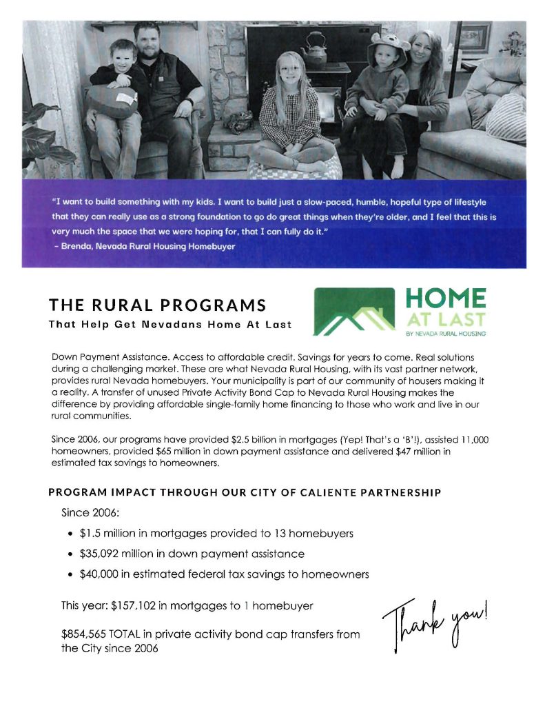 Nevada Rural Housing Community Progress Report City of Caliente 2025 August 13, 2025 By City of Caliente